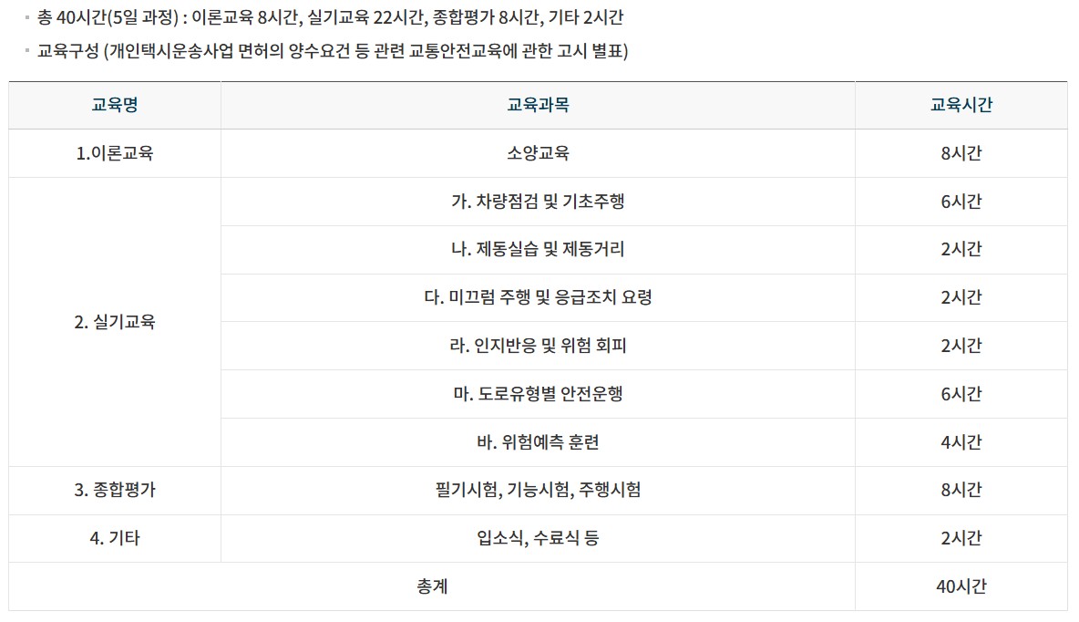 이 과정은 택시운전 경력이 있는 신청자에게 시간적 부담을 줄여주는 실용적인 교육입니다.