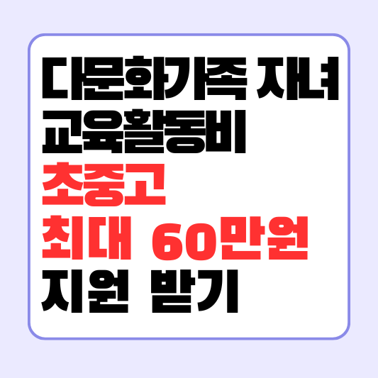 핵심 요약: 중위소득 100% 이하 다문화가족의 7~18세 자녀를 대상으로, 학교급에 따라 연간 40만 원에서 최대 60만 원의 교육활동비를 전자바우처로 지원합니다.