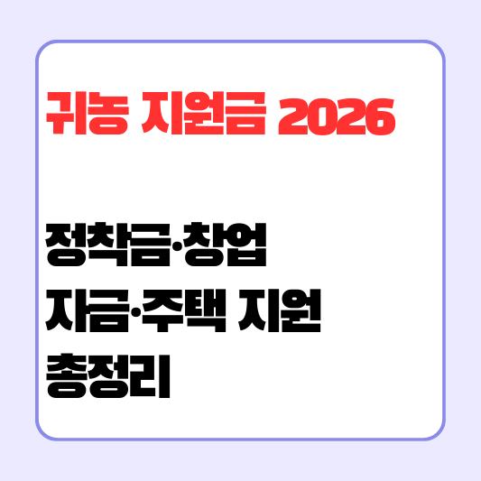 ■ 2026 귀농 지원금 및 융자 혜택 요약