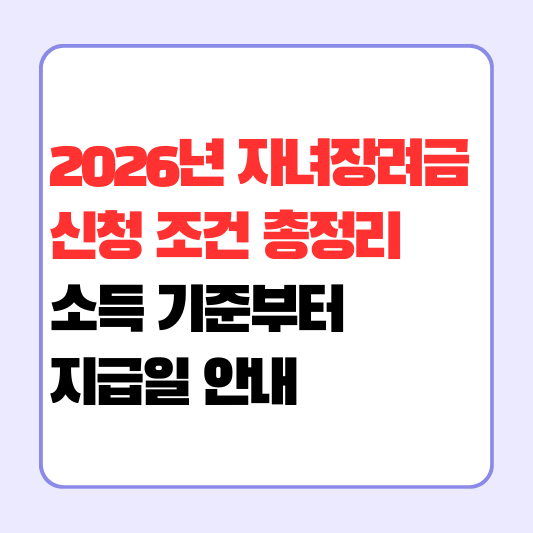 2026년 자녀장려금 소득 요건 완화 및 가구별 지급일·지원대상 안내