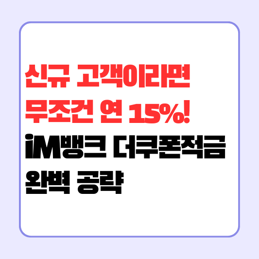 관련링크 : iM뱅크 더쿠폰적금 완벽 공략 상세정보 안내
