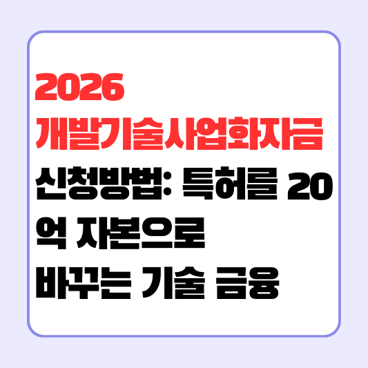 2026 개발기술사업화자금 신청방법: 특허를 20억 자본으로 바꾸는 기술 금융