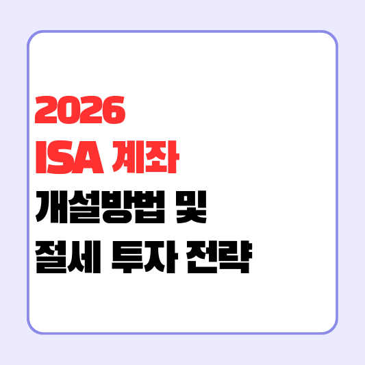 [상세보기] 2026 ISA 계좌 개설방법 및 절세 투자 전략'정책 & 지원금' 카테고리의 다른 글